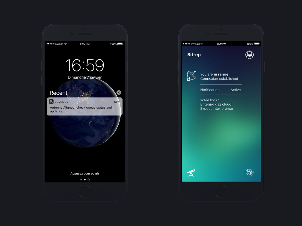 Inspired by the current civil space race led by SpaceX or Blue Origin, Comsmos is a fictional social network that allows people on Earth to connect with astronauts far from our planet.