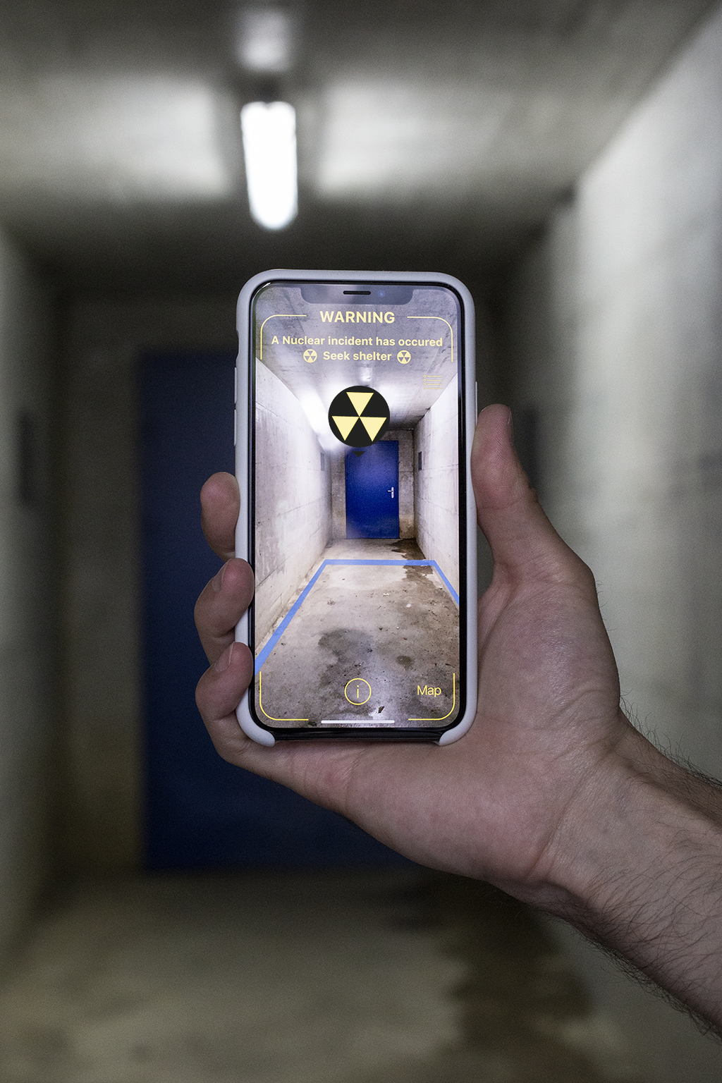 The app uses geolocation data coupled with augmented reality allowing it's users to view all nearby nuclear related facilities. This approach makes the invisible force that is nuclear power visible and reachable with contextual informations of every points of interest. NucleAR has a second usecase: It can simulate a nuclear incident in your vicinity, triggering a safety mode that will guide you through AR to the nearest nuclear shelter, which is relevant in country heavily prepared to those cases, such as Switzerland. This secondary mode could be use as a real emergency broadcast system in case of such events.