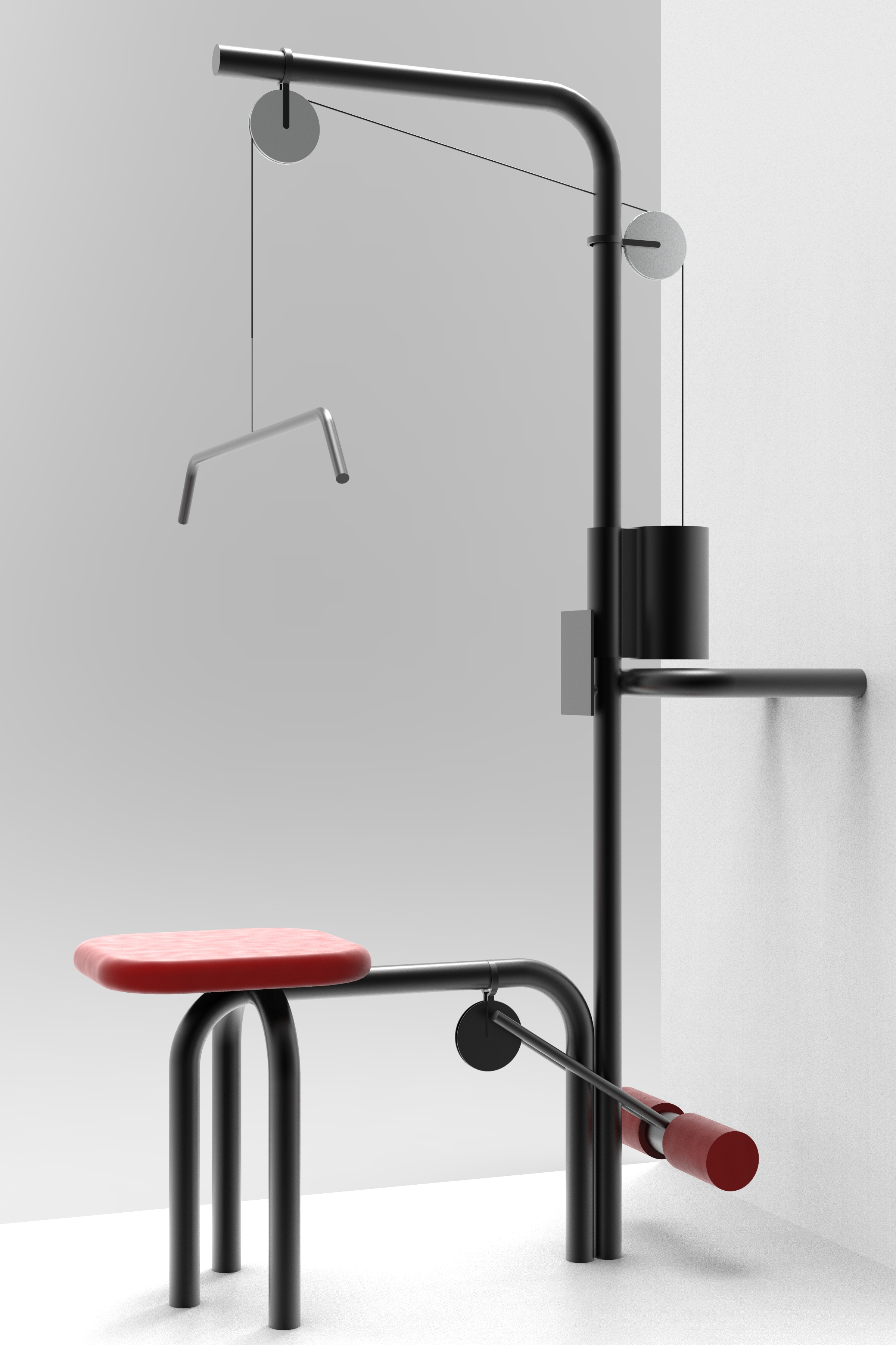Instafit was born from a collaboration between Media & Interaction and Industrial Design. The goal was to augment a fitness machine with new technology, to mix sports machines directly with the social media phenomenon. This machine allows you to get fit while browsing Instagram or any scroll-based app on your phone. The upper exercise targets the arms, and triggers the scrolling on your phone. The lower is targeting the legs, and simply allow you to double tap your screen to trigger a Like. As you flex those muscles, you are now revarded directly by new content.